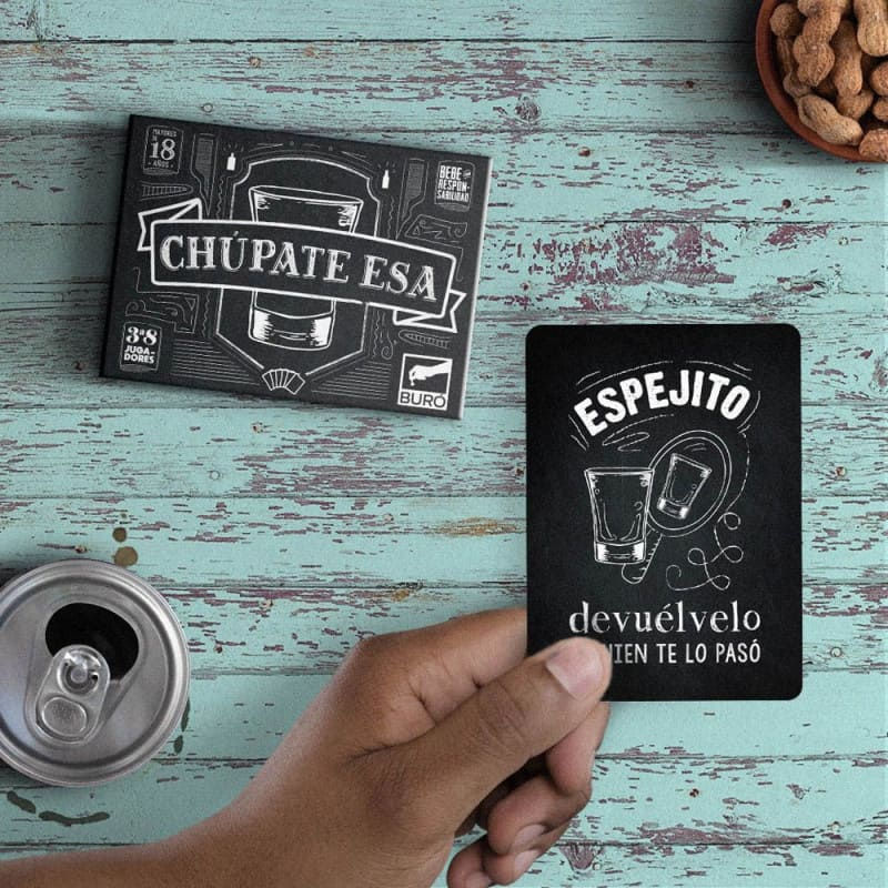 Chúpate Esa es un juego rápido y divertido (y lleno de traiciones) de 3 a 8 jugadores a partir de 18 años: tu objetivo es no beber.
