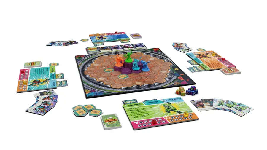 ¡Bienvenidos a Saurozoic Warriors Arena, el juego de mesa de batalla gladiatoria contra dinosaurios! Los jugadores compiten como DINO-GLADIADORES en un brutal duelo de fuerza bruta y estrategia astuta; ¡gana el último dinosaurio en pie!