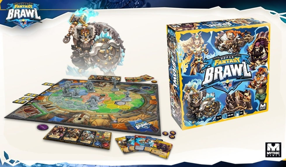 Super Fantasy Brawl es un juego de mesa de miniaturas competitivo, divertido y de ritmo rápido. Los jugadores seleccionan un equipo de tres campeones y combinan sus cartas de acción únicas para crear un mazo de acción sinérgico. El juego no tiene facciones, por lo que los jugadores pueden elegir cualquier combinación de campeones que deseen. Cada turno, los jugadores usan su mano de cartas de acción para maniobrar, atacar, desplazar enemigos y reclamar objetivos para ganar puntos de victoria.